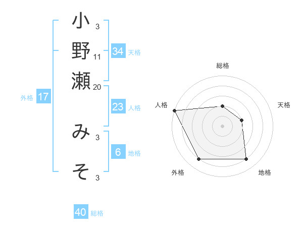 小野瀬 みそさんを姓名の画数から五運を鑑定