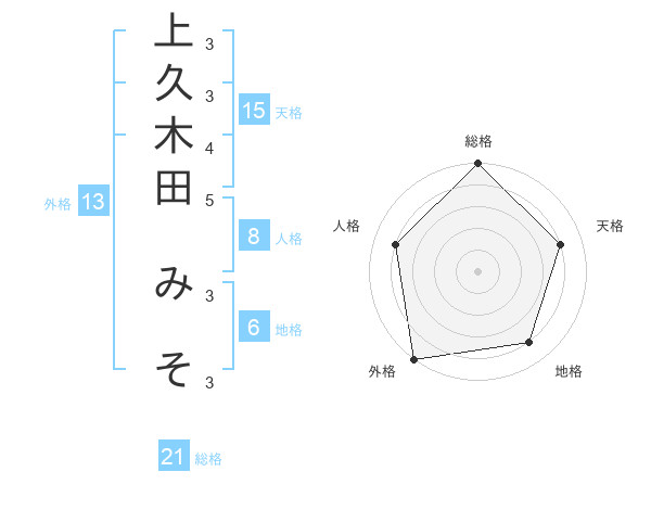 上久木田 みそさんを姓名の画数から五運を鑑定