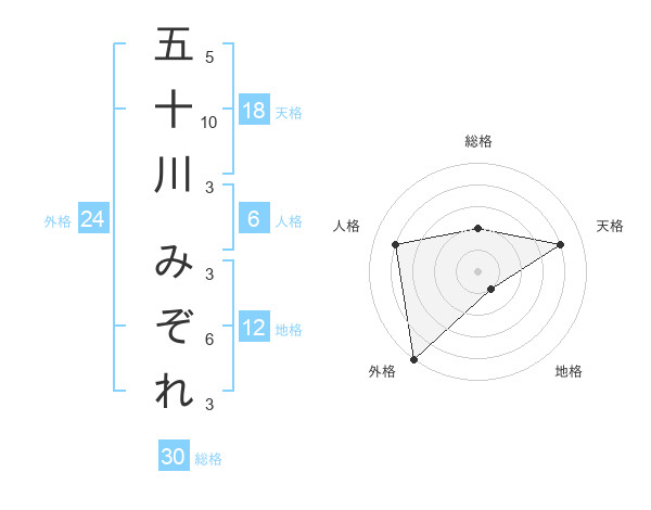 五十川 みぞれさんを姓名の画数から五運を鑑定