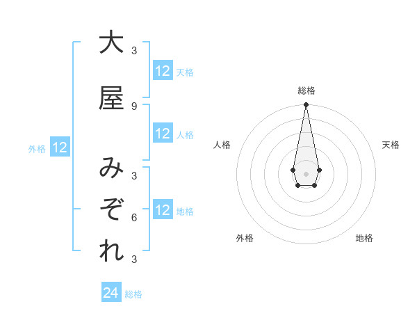 大屋 みぞれさんの天格は12画の1点