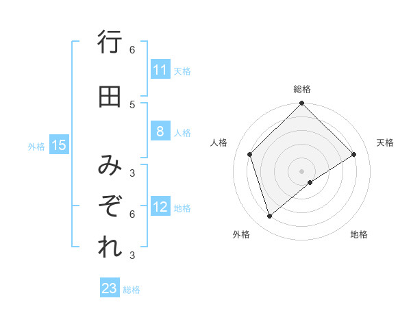 行田 みぞれさんを姓名の画数から五運を鑑定