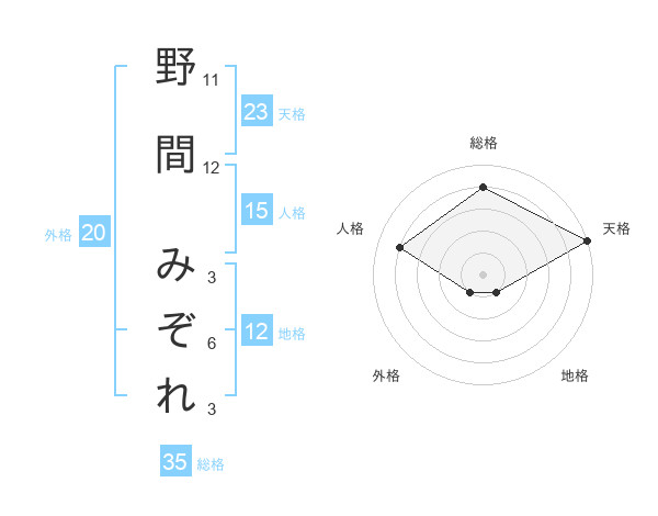 野間 みぞれさんを姓名の画数から五運を鑑定