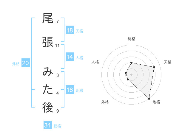 尾張 みた後さんを姓名の画数から五運を鑑定