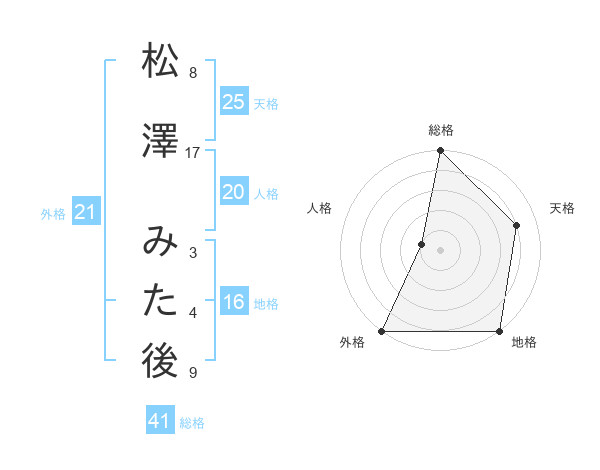 松澤 みた後さんを姓名の画数から五運を鑑定