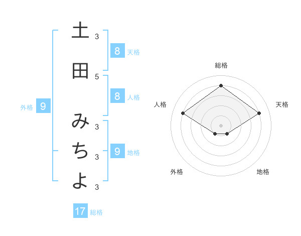土田 みちよさんの天格は8画の4点!