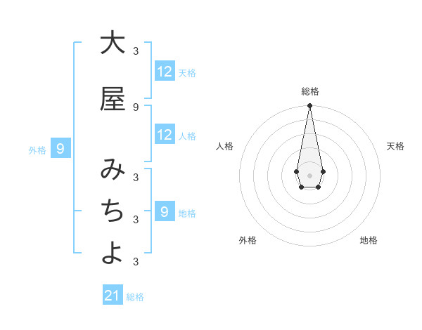 大屋 みちよさんを姓名の画数から五運を鑑定