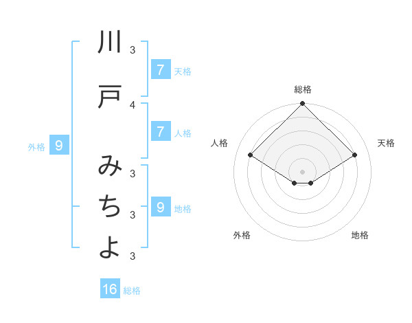 川戸 みちよさんを姓名の画数から五運を鑑定