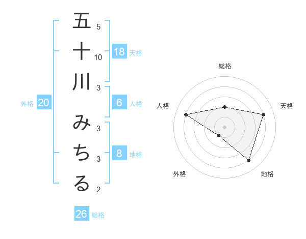 五十川 みちるさんを姓名の画数から五運を鑑定