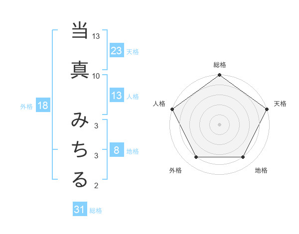 当真 みちるさんの総格は31画の5点!