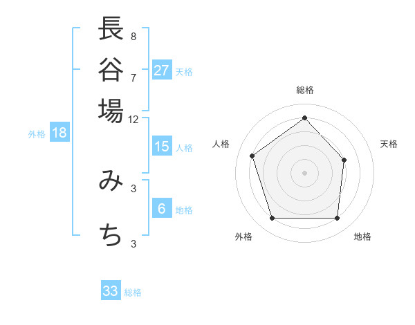 長谷場 みちさんを姓名の画数から五運を鑑定