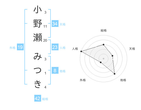 小野瀬 みつきさんを姓名の画数から五運を鑑定