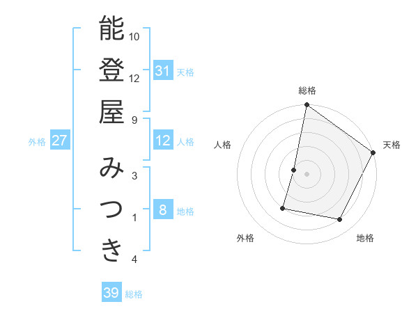 能登屋 みつきさんの総格は39画の5点!