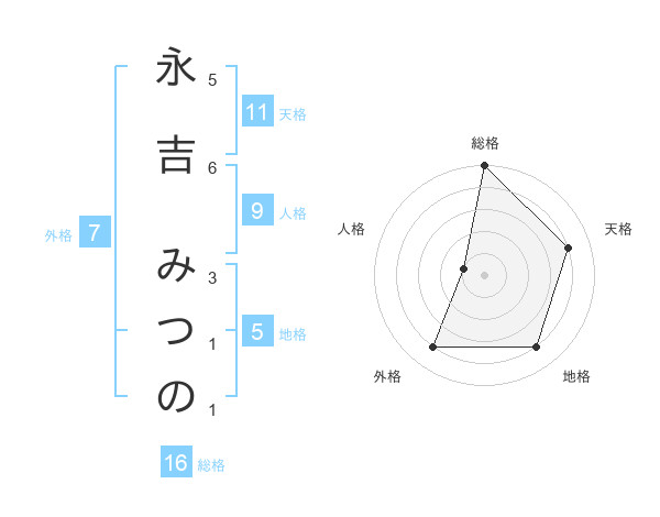 永吉 みつのさんを姓名の画数から五運を鑑定