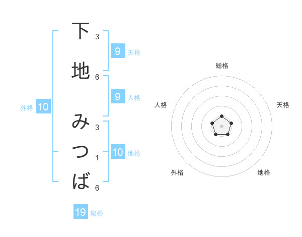 下地 みつばさんを姓名の画数から五運を鑑定