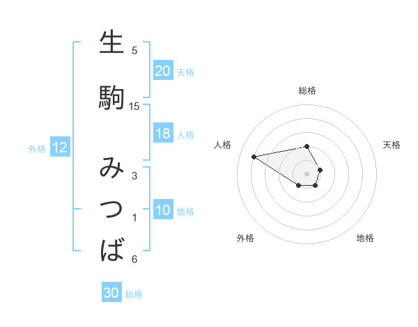 生駒 みつばさんを姓名の画数から五運を鑑定