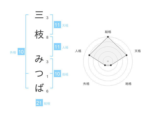 三枝 みつばさんを姓名の画数から五運を鑑定