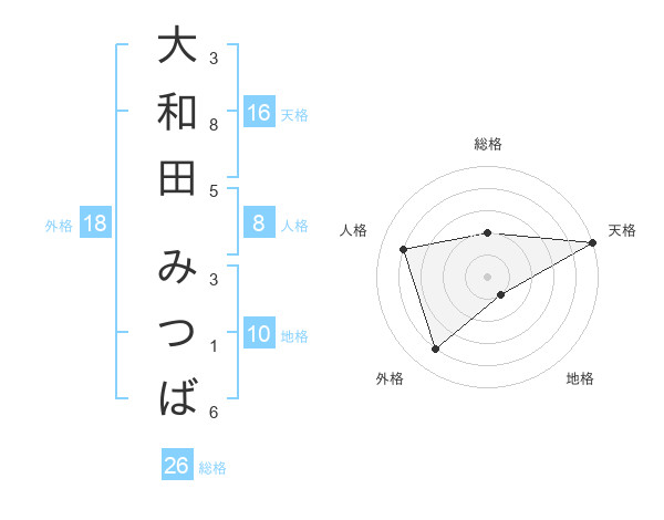 大和田 みつばさんを姓名の画数から五運を鑑定
