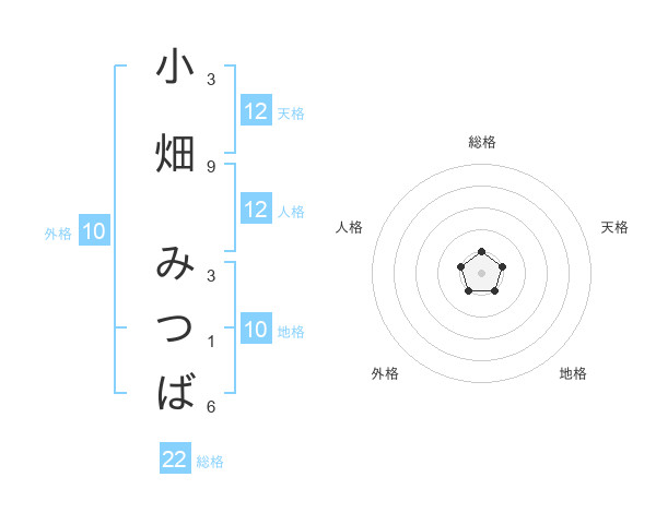 小畑 みつばさんを姓名の画数から五運を鑑定