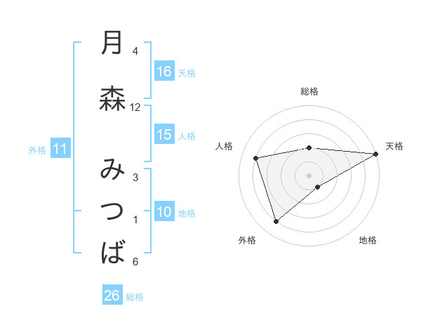月森 みつばさんの天格は16画の5点!