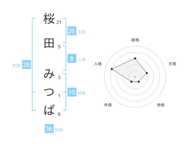 桜田 みつばさんを姓名の画数から五運を鑑定