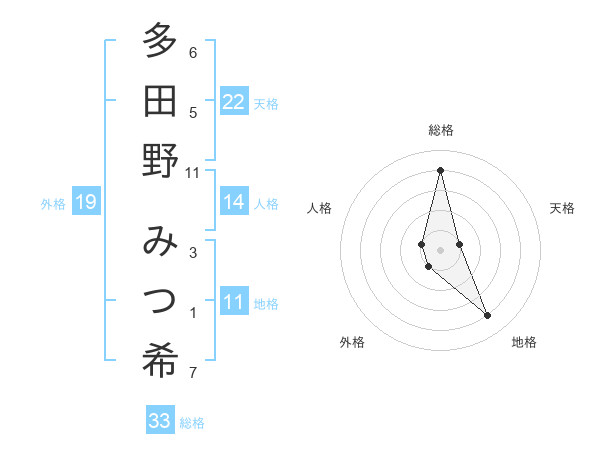 多田野 みつ希さんを姓名の画数から五運を鑑定
