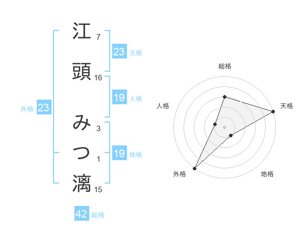 江頭 みつ漓さんの天格は23画の5点!