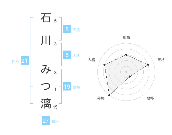 石川 みつ漓さんを姓名の画数から五運を鑑定
