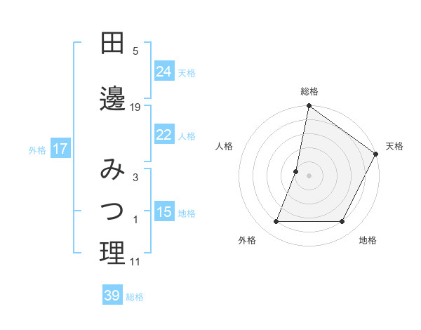 田邊 みつ理さんを姓名の画数から五運を鑑定