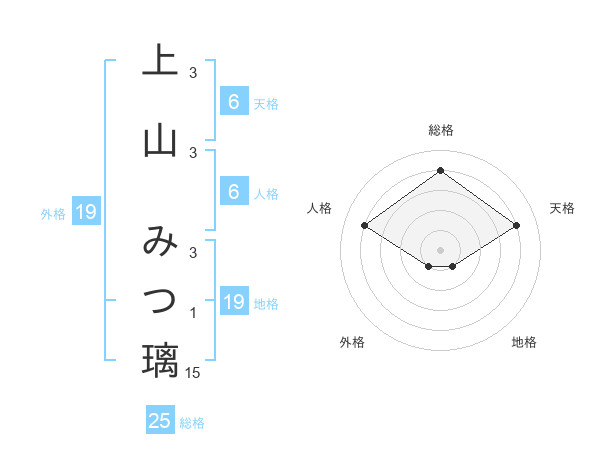 上山 みつ璃さんの総格は25画の4点!