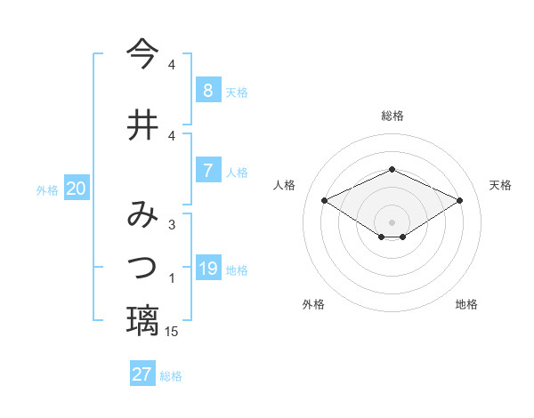 今井 みつ璃さんの天格は8画の4点