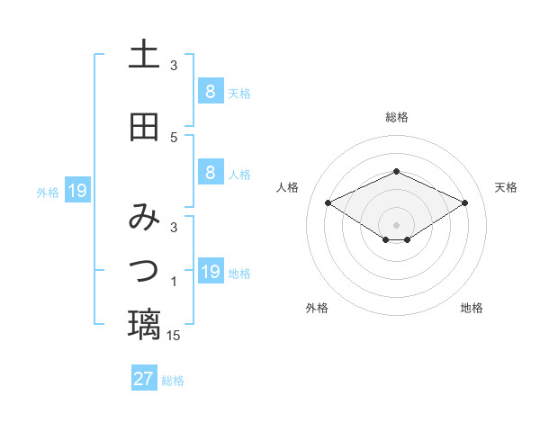 土田 みつ璃さんを姓名の画数から五運を鑑定