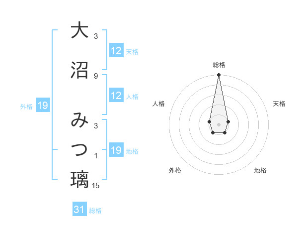 大沼 みつ璃さんの総格は31画の5点!