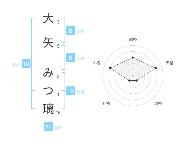 大矢 みつ璃さんを姓名の画数から五運を鑑定