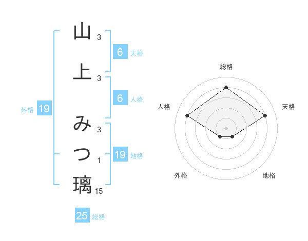 山上 みつ璃さんの総格は25画の4点!