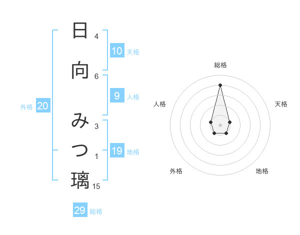 日向 みつ璃さんを姓名の画数から五運を鑑定