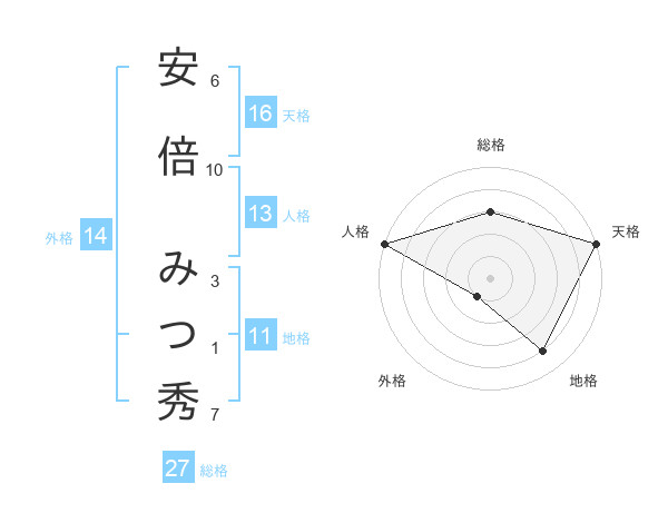 安倍 みつ秀さんを姓名の画数から五運を鑑定