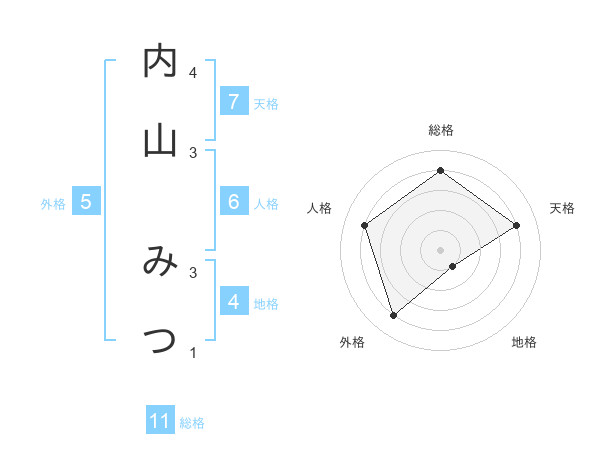 内山 みつさんの総格は11画の4点!