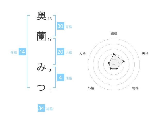 奥薗 みつさんの総格は34画の2点!