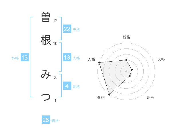 占い結果は姓名判断である以上、良い場合も悪い場合もありますが、決してお名前を誹謗中傷するものでなく、画数の自動計算によって得られたものです。また、本サイトの検索によって得られた鑑定結果で、第三者を誹謗中傷したり名誉を棄損するような行為を禁じます。