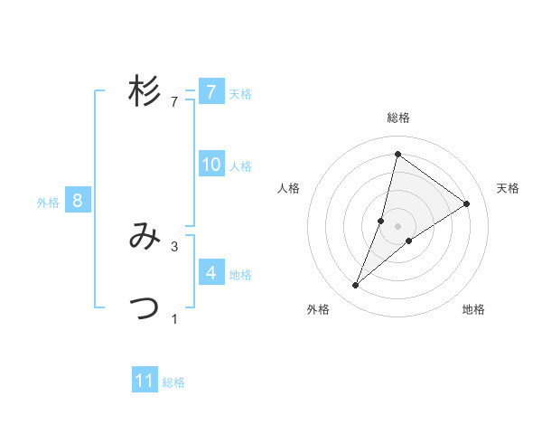 杉 みつさんの天格は7画の4点!