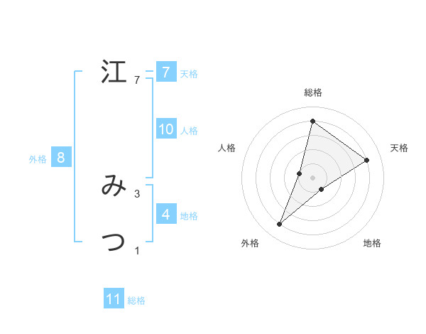 江 みつさんの総格は11画の4点!