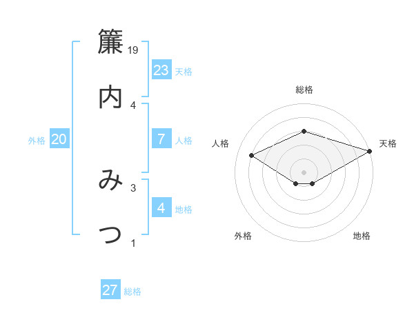 簾内 みつさんの総格は27画の3点!