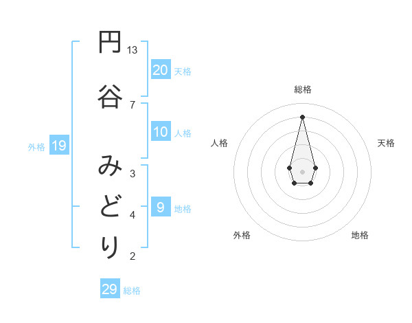 円谷 みどりさんの総格は29画の4点!