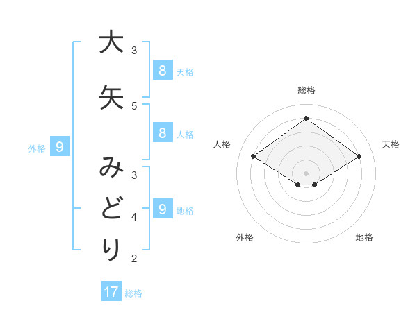 大矢 みどりさんを姓名の画数から五運を鑑定