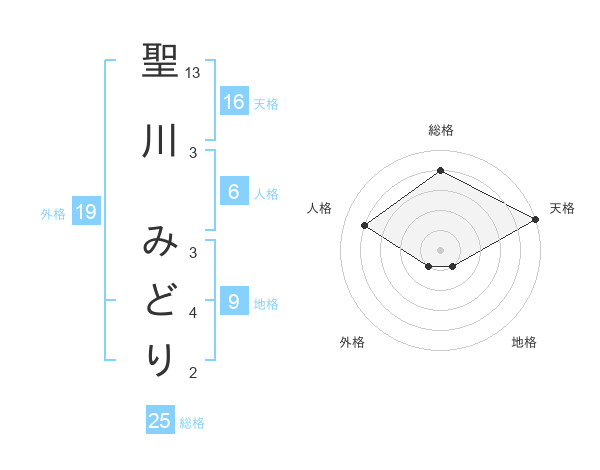 聖川 みどりさんの天格は16画の5点