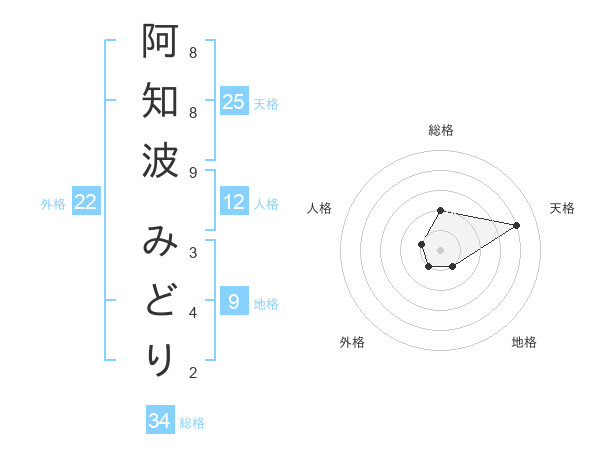 阿知波 みどりさんを姓名の画数から五運を鑑定