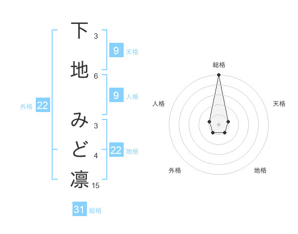 下地 みど凛さんの総格は31画の5点!