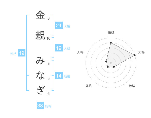 金親 みなぎさんの総格は38画の4点!
