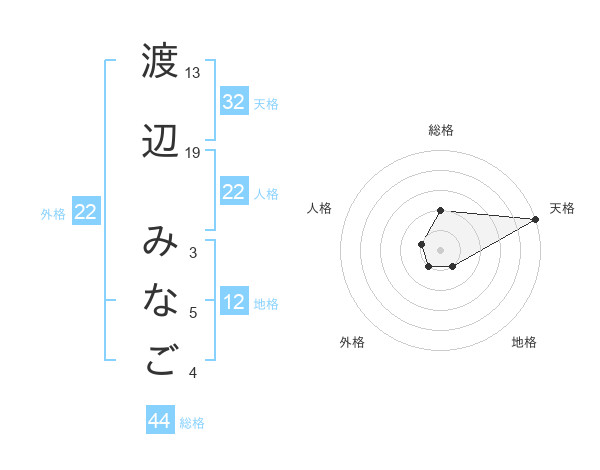 渡辺 みなごさんを姓名の画数から五運を鑑定