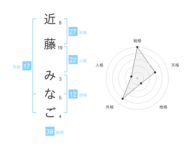 近藤 みなごさんの総格は39画の5点!